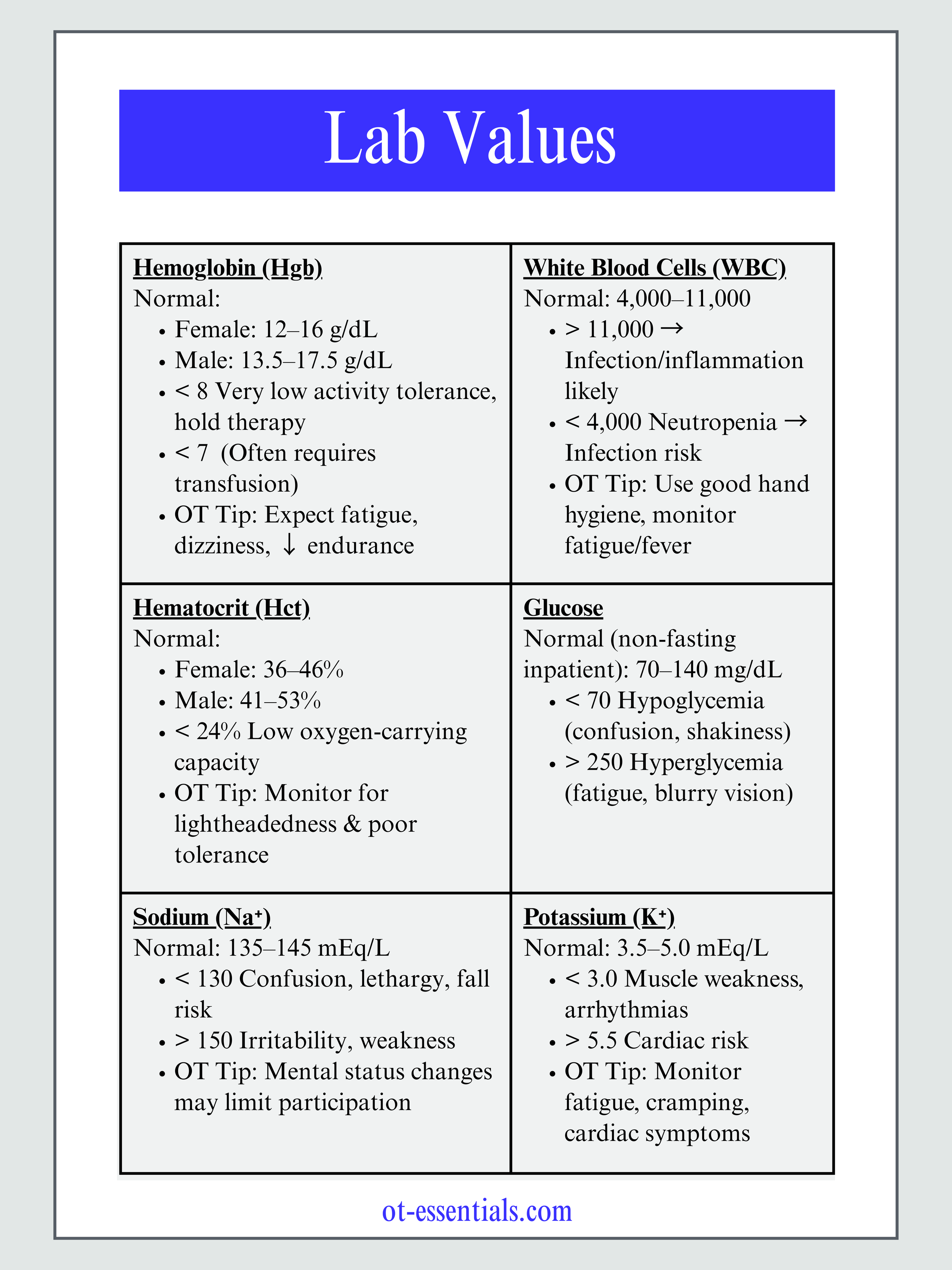 Lab Values to know