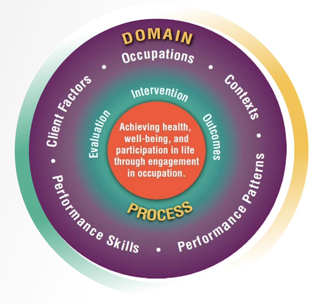 Image from: American Occupational Therapy Association. (2020). Occupational therapy practice framework: Domain and process (4th ed.). American Journal of Occupational Therapy, 74(Suppl. 2), 7412410010. https://doi.org/10.5014/ajot.2020.74S2001